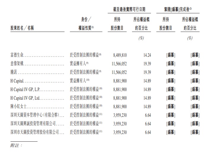 卓正医疗的股权结构较为复杂,呈现出多元化特点。自成立以来,卓正医疗在资本市场备受关注,先后吸引了富德生命人寿、腾讯等机构注资。其中,腾讯通过意像架构持有卓正医疗19.39%的股份。H