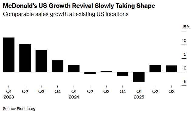 为了重塑“平价餐饮首选地”的品牌形象,麦当劳近年来积极推出促销活动和优惠套餐。其中包括在8月下调部分套餐价格,并推出“"买一加一仅需1美元”的优惠活动,适用于香肠饼干、双层芝士汉堡等商品。尽管餐饮支出整体趋缓,这些措施似乎已开始取得成效。该公司首席执行官Chris Kempczinski在周三发布的声明中表示,麦当劳正“在充满挑战的环境中实现可持续增长”。