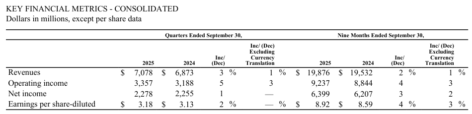 智通财经APP获悉,国际餐饮巨头麦当劳(MCD.US)公布了2025年第三季度业绩。财报显示,麦当劳Q3营收同比增长3%至70.78亿美元,不及分析师普遍预期的70.95亿美元。营业利润为33.57亿美元,同比增长5%。净利润为22.78亿美元,同比增长1%。调整后的每股收益为3.22美元,不及分析师普遍预期的3.32美元。