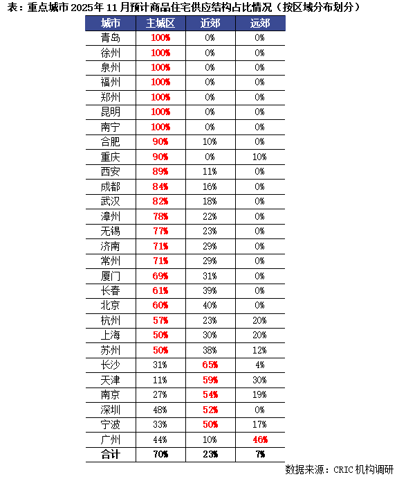 结构:近8成城市以主城为供应主力 沪杭蓉汉等16城改善占比主导