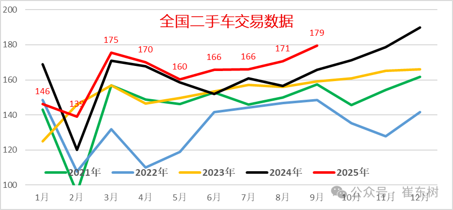 2023-2024年的二手车交易较活跃,实现了较强的增长。受春节因素,2025年1月的二手车交易较弱,6-9月逐步回暖。9月二手车的走势较强。
