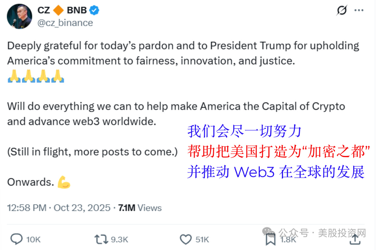 今年10月23日,特朗普签署特赦令,赦免了币安创始人赵长鹏。赵长鹏在获知这一消息后,第一时间发文,感谢总统,并宣称感谢美国对“公平与创新”的坚持。
