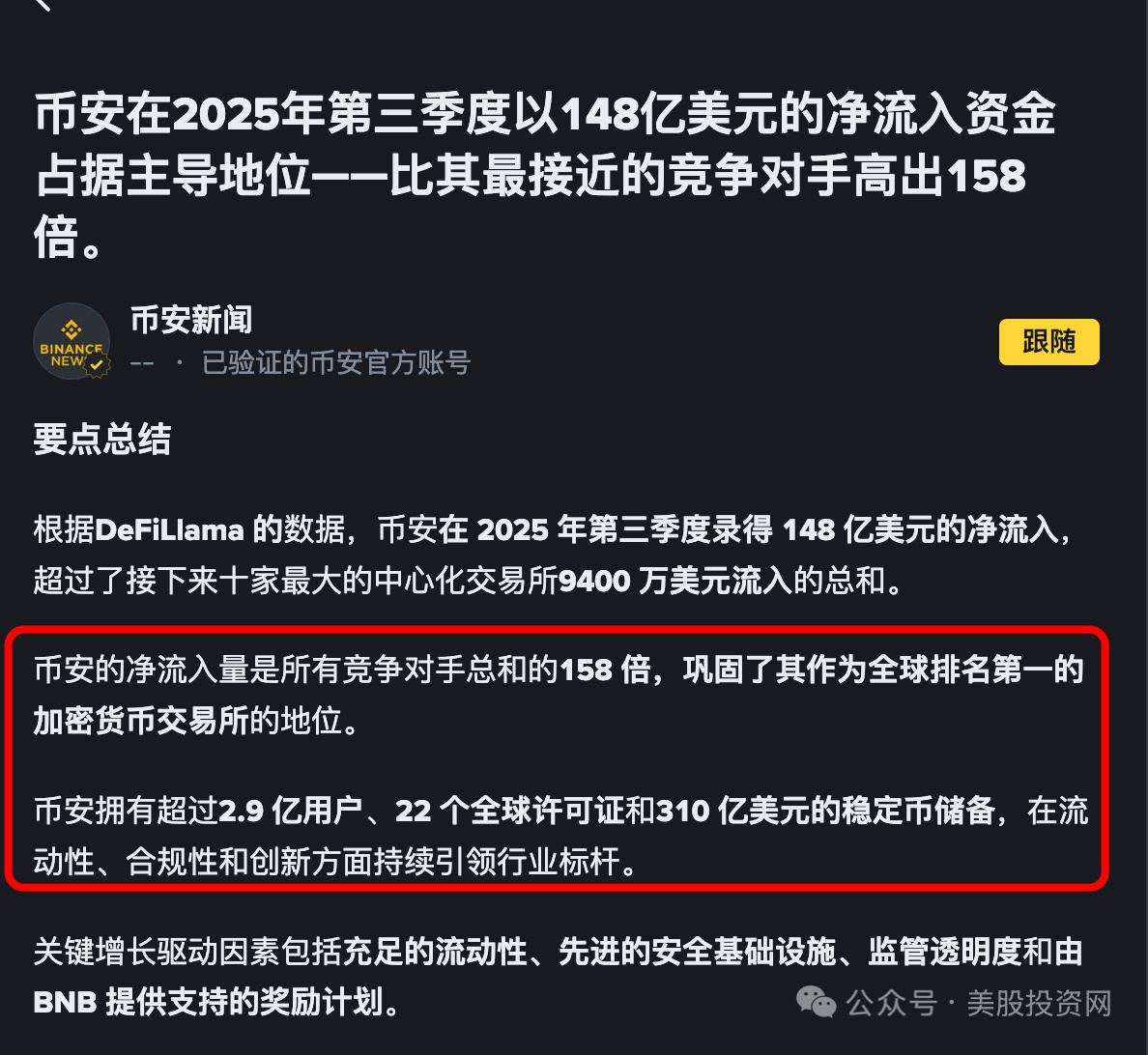 赵长鹏和币安,作为全球最大、最具影响力的加密平台,变成了美国必须争取的战略资源。凭借全球庞大的用户生态与高达百亿美元级的日交易量,币安已成为全球金融市场的重要基础设施。赦免赵长鹏,不仅是特朗普为自己家族获取财富的手段,更是为美国争取加密金融市场话语权的关键步骤。