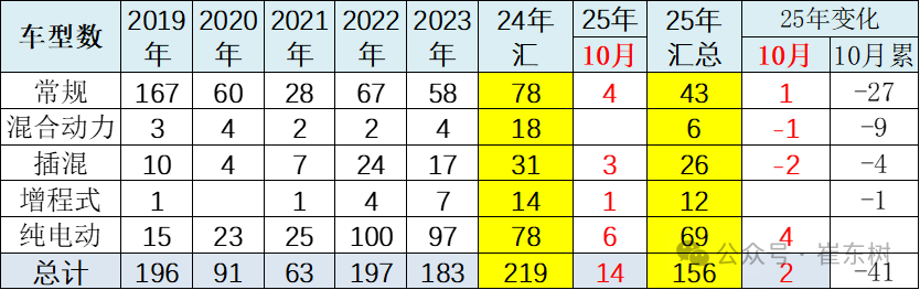 2025年1-10月常规燃油车降价43款,较同期减少27款;2025年1-10月混合动力燃油车降价6款,较同期减少9款;2025年1-10月插混燃油车降价26款,较同期减少4款;2025年1-10月增程式车型降价12款,较同期少1款;2025年1-10月纯电动车型降价69款。