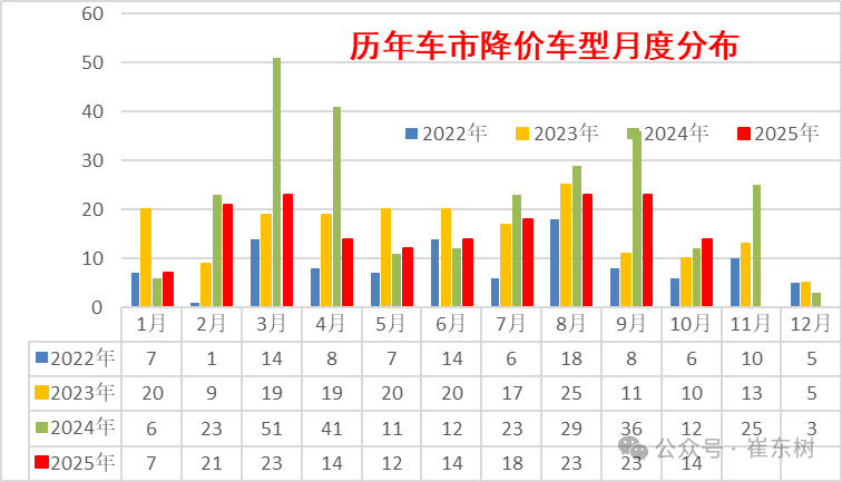 2025年截止到10月的降价车型总体不多,主要是新能源车,集中在上半年。3季度降价温和,10月仍较克制。