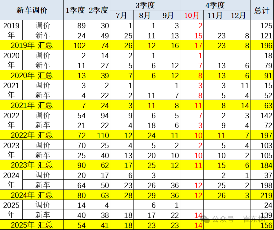 智通财经APP获悉,11月11日,崔东树发布2025年10月乘用车市场降价促销分析。2025年乘用车行业促销与降级均回归理性,市场秩序明显改善。2025年1-10月的新车降156款的规模相对温和。目前的价格竞争主要是新车推出直接突破原有价格的下限,而不是增配不降价的模式。10月直接降价的车型没有,而新车增配降价是提升性价比的方式较好。
