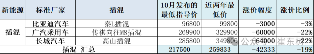 2025年10月份插混车型新车降价的均价是21.8万元,降价幅度达到4.2万元,新车降价力度达到19%。降价车型总体力度相对较大,由于头部领军企业的价格很有竞争力,对应竞品需要大力调整,这样的降价是必然的趋势。