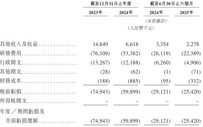 2023、2024年及截至2025年6月30日止六个月,该公司亏损及全面亏损总额分别为7494.3万元、5989.9万元、2542万元。