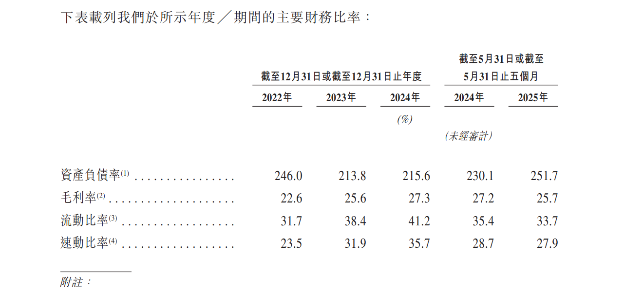 公司于2022年、2023年、2024年及截至2024年及2025年5月31 日止五个月分别录得整体毛利人民币4838.3万元、人民币1.4亿元、人民币1.58亿元、人民币6037.8万元及人民币6732.4万元,同期整体毛利率为22.6%、25.6%、 27.3%、27.2%及25.7%。