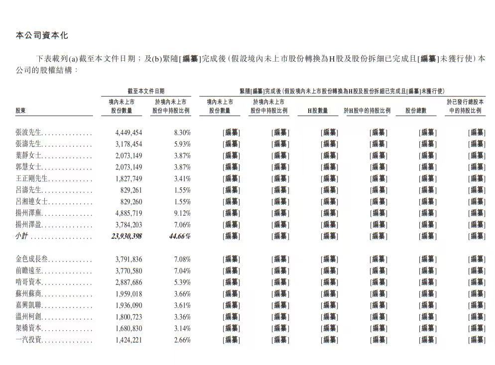 截至最后实际可行日期(2025年11月3日),控股股东集团(包括张涛先生、张波先生、王正刚先生、吕涛先生、叶静女士、郭慧女士、吕湘连女士、扬州泽盈及扬州泽芜)根据(i)张涛先生、张波先生、王正刚先生、吕涛先生、叶静女士、郭慧女士、吕湘连女士之间的一致行动安排,及(ii)张涛先生以普通合伙人身份分别对公司员工持股平台扬州泽芜及扬州泽盈拥有的控制权,合共于股本总额中拥有约44.66%的权益。