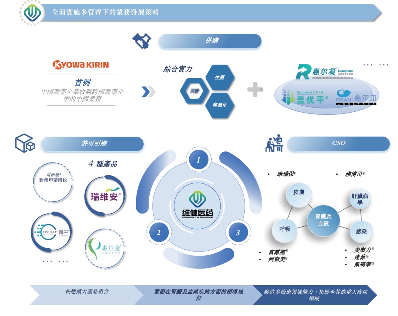 维健医药的所有主要管线产品(包括作为协和麒麟中国收购事项的一部分而获得及许可引进的处方药)均已在中国内地实现商业化,但可沛维®除外。可沛维®适用于治疗正在接受血液透析的成年CKD患者所伴发的中度至重度瘙痒症,目前已成功完成III期临床试验并向国家药监局提交新药申请,正在中国推进监管审批流程,预计于2026年获批上市,届时商业化将为公司带来收入贡献。
