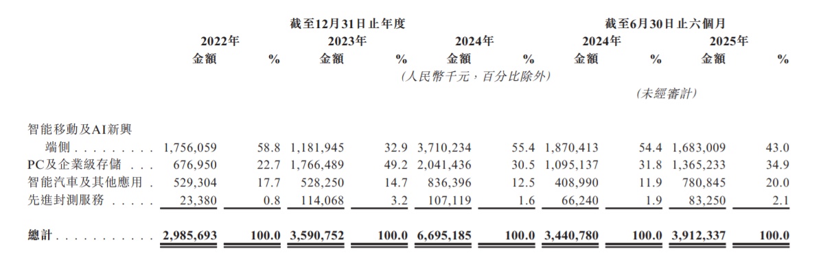 据招股书显示,佰维存储提供的高性能半导体存储解决方案已覆盖智能移动及AI新兴端侧、PC及企业级存储、以及智能汽车及其他应用领域等多元应用场景。同时,依托一体化技术能力,公司亦为行业核心客户提供先进封测服务。