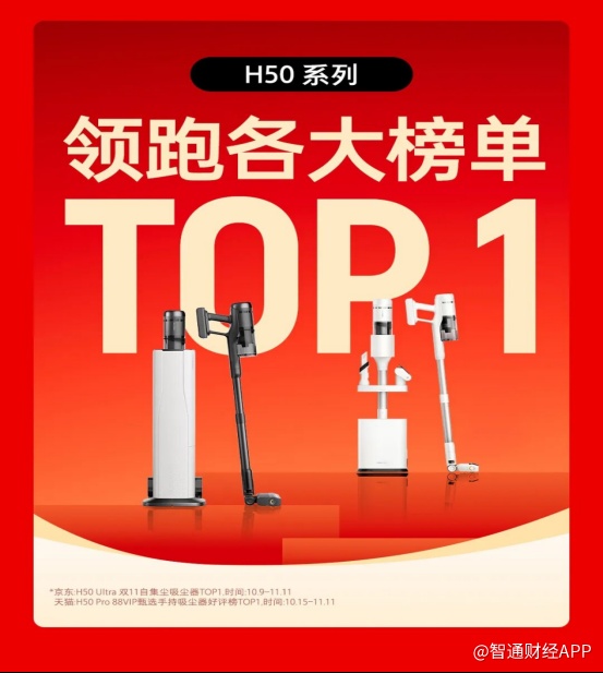 其中吸尘器净销额同比增长接近23倍,H50系列领跑各大榜单。