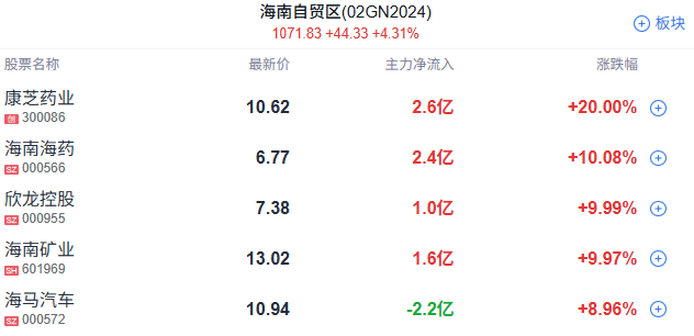 海南自贸区板块再度走强,海南海药、欣龙控股直线涨停,康芝药业等跟涨。