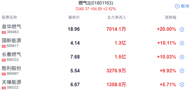 燃气股逆势走强,胜利股份4连板,长春燃气、首华燃气、大众公用、凯添然气等纷纷上涨。