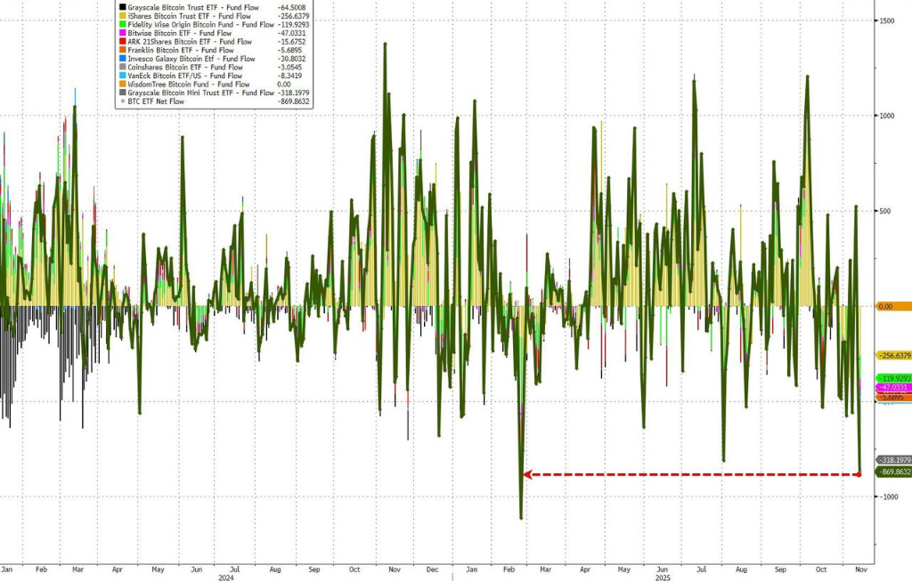 对冲基金在全线买入,需求处于96%分位;高贝塔动量股、最多空头股和AI领军股均从开盘下跌3%反弹至收涨3%。但比特币市场却持续承压,表明其正经历与传统风险资产不同的困境。