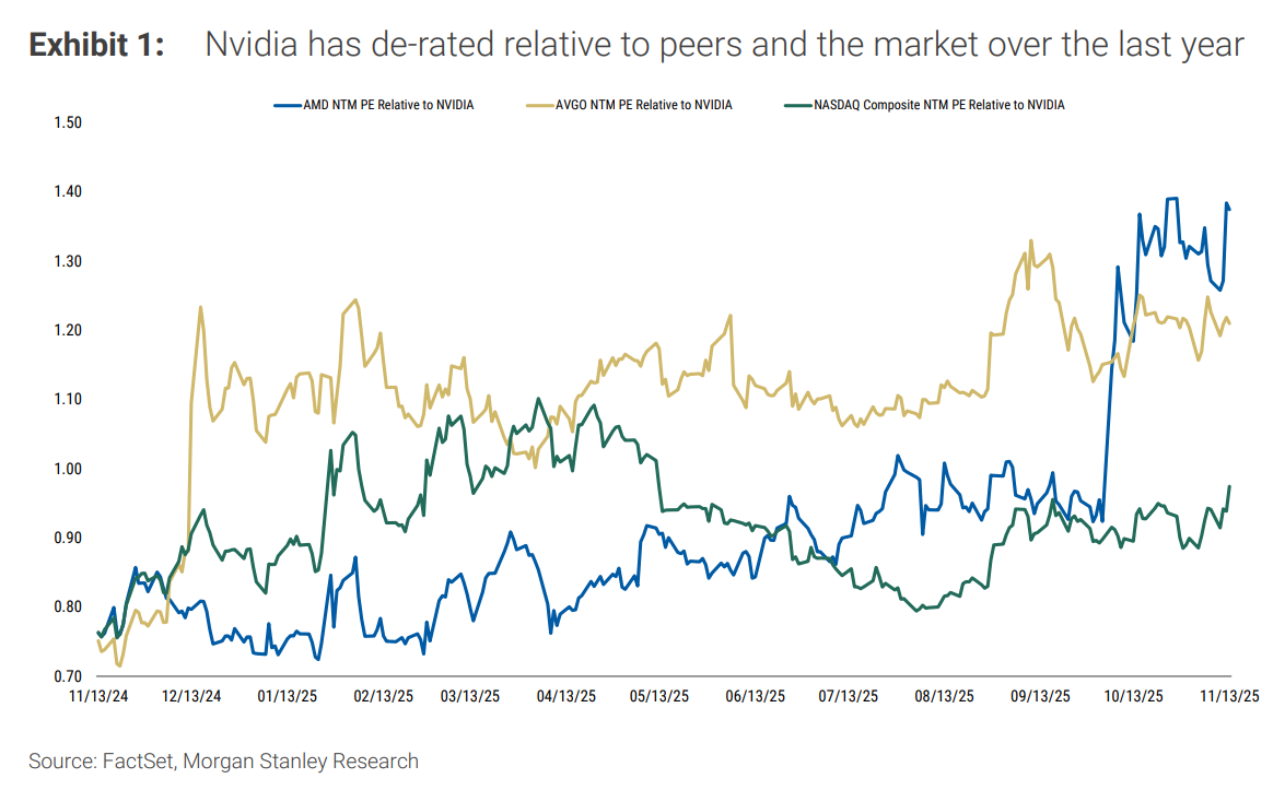 大摩认为,下周业绩是英伟达过去几个季度中表现最强劲的一次财报,尽管英伟达股价表现不俗,但相对于AI同行股票表现滞后,预计这种情况将出现逆转。