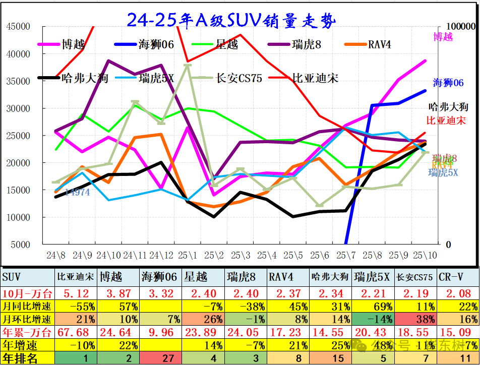 主流SUV市场格局迅速变化,比亚迪和吉利、长安、奇瑞的SUV 表现超强,实现了自主SUV的国内外全面突破。