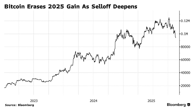 智通财经APP获悉,在创下历史新高仅一个多月后,随着市场对特朗普政府支持加密货币立场的乐观情绪消退,比特币已回吐今年年初以来累计超过30%的涨幅。
