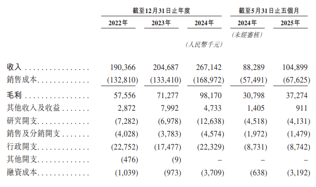财务方面,于2022年度、2023年度、2024年度、2024年以及2025年截至5月31日止五个月,金岩高新分别实现收入约为1.90亿元、2.05亿元、2.67亿元、8828.9万元、1.05亿元人民币,年内/期间溢利及全面收益总额分别为2442.3万元、4361.7万元、5260.2万元、1447万元、1803.2万元人民币。
