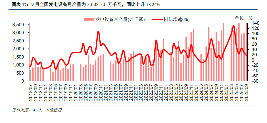 风电:近期风机价格维持稳定,风机环节2026年业绩改善确定性强,大部分主机厂对明年出货预期乐观,预计26年出货在25年高基数情况下仍有所提升,后续可关注主机企业26年业绩是否进一步超预期,目前预期为明年陆风风机净利率2-3%;也关注潜在具备涨价可能性的零部件环节(目前看来仍主要是铸件叶片环节)。