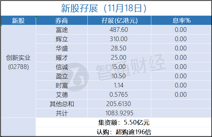 新股孖展统计 | 11月18日