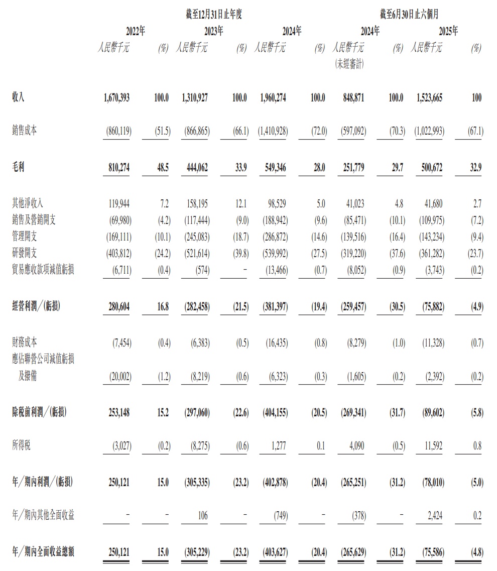 财务方面,财务方面,于2022年度、2023年度、2024年度及2025年截至6月30日止六个月,纳芯微实现收入分别约为16.70亿元、13.11亿元、19.60亿元、15.24亿元人民币;同期,年/期内全面收益总额分别约为2.50亿元、-3.05亿元、-4.04亿元、-7558.6万元人民币。