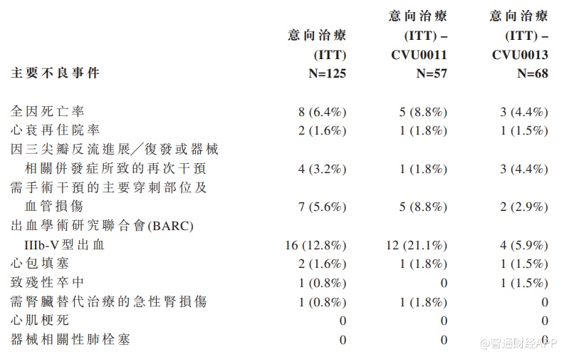经临床事件委员会(CEC)裁定,术后30天内主要不良事件(MAE)发生率如下: