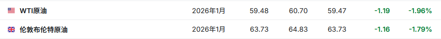 3. 截至发稿,WTI原油跌1.96%,报59.48美元/桶。布伦特原油跌1.79%,报63.73美元/桶。