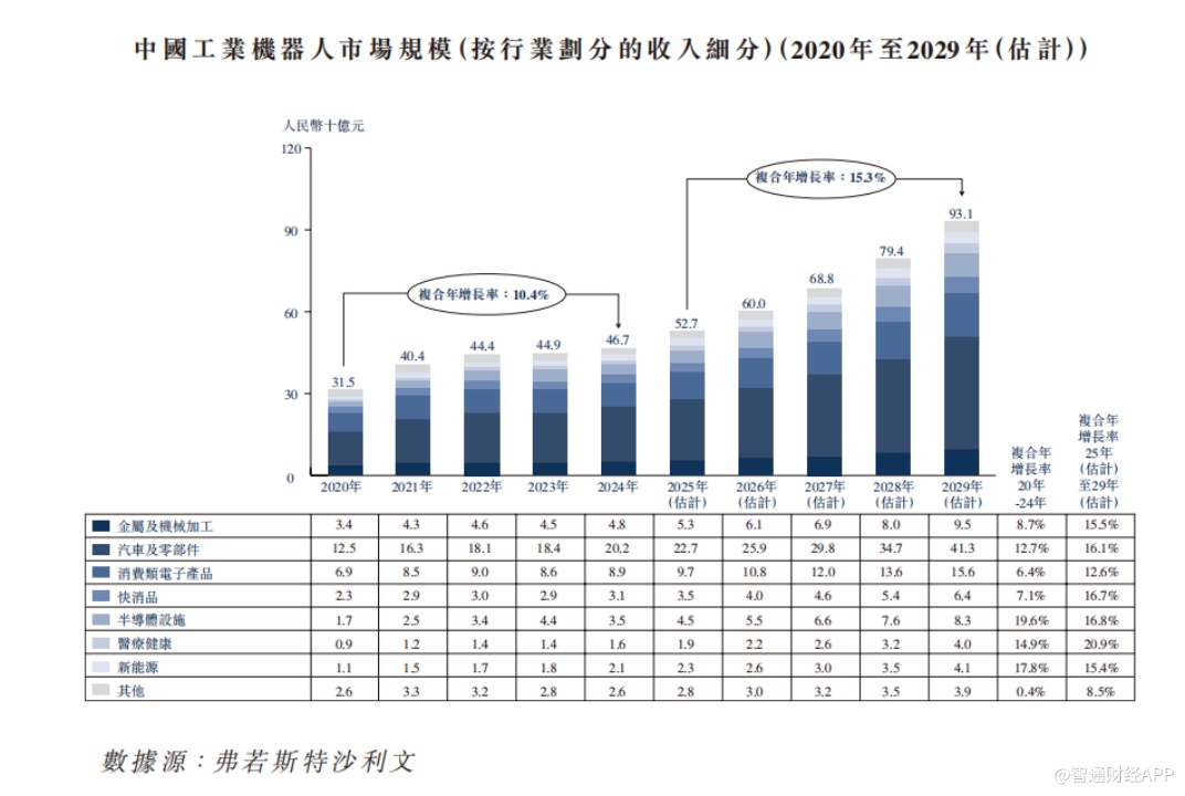 从行业机遇来看,工业机器人赛道正处于提速增长的发展时期,有助于卡诺普持续改善盈利能力。据弗若斯特沙利文资料,中国工业机器人市场呈现高速增长态势,市场规模从2020年的315亿元扩大至2024年的467亿元,期间复合年增长率达10.4%。随着下游应用场景及市场需求持续扩大,预计市场规模将进一步加速,从2025年的527亿元增长至2029年的931亿元,复合年增长率为15.3%。