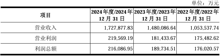 财务方面,于2022年度、2023年度、2024年度,公司实现营业收入分别约为105.35亿元、148.01亿元、172.79亿元人民币;同期,公司净利润分别约为15.20亿元、15.11亿元、17.12亿元人民币。