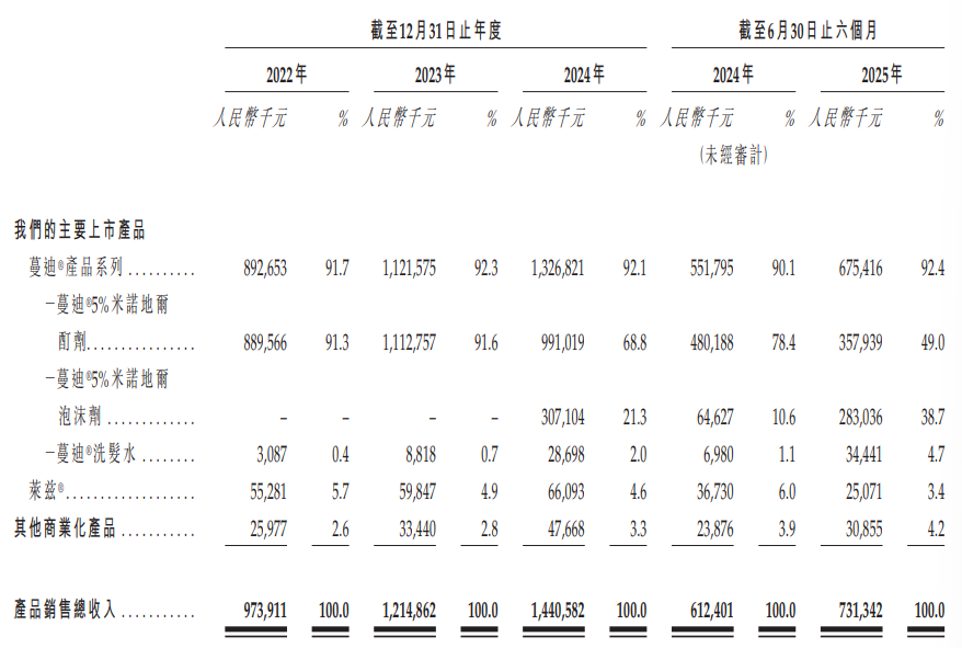 “秃”如其来的烦恼扩大化、年轻化,这对于为市场提供治疗脱发产品的公司而言无疑是一个确定性的成长机遇。智通财经注意到,日前,率先推出蔓迪®米诺地尔类产品的蔓迪国际向港交所主板递交了上市申请。招股书显示,蔓迪国际早在2001年便在国内获批了首款5%米诺地尔酊剂产品,并以蔓迪®为品牌,填补了国内脱发治疗市场的关键空白。2018-2024年,蔓迪国际的蔓迪®系列米诺地尔类产品的销量总计超过5000万瓶。另按销售额计算,该公司的蔓迪®系列米诺地尔类产品自2014年起连续十年位居中国脱发药物市场第一。