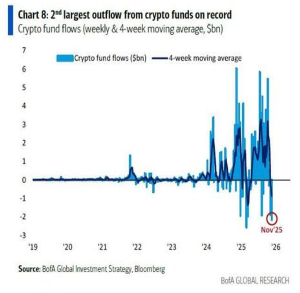 Hartnett指出,加密货币、信贷、美元和私募股权等资产均已显现"流动性峰值"信号。过去两年全球央行实施多次降息推动了市场的投机情绪,但近期美联储的鹰派言论令市场对2026年进一步宽松政策产生疑虑。加密货币受到重挫,比特币、以太坊持续下跌,凸显了流动性收紧对风险资产的冲击。