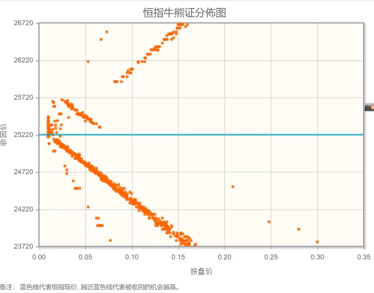 恒生指数在25220点位置,上方熊证密集区靠近中轴,恒生指数有反弹意愿。美联储高官连番表示12月会议未必减息,但威廉姆斯发言后减息概率反弹至70%,本周恒生指数看涨。