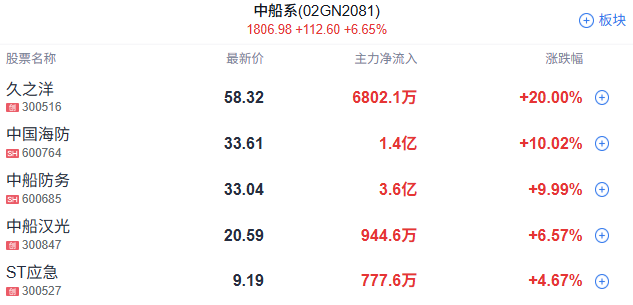 盘面上,市场热点良性轮动,个股呈现普涨态势,军工、中船系等再度走强,久之洋、中船防务等封板;商业航天概念集体上涨,上海港湾、航天动力等涨停;AI应用端集体爆发,省广集团多股涨停;地产股再度拉升,世联行封板。此外,大消费、量子科技、风电等方向均有所表现。