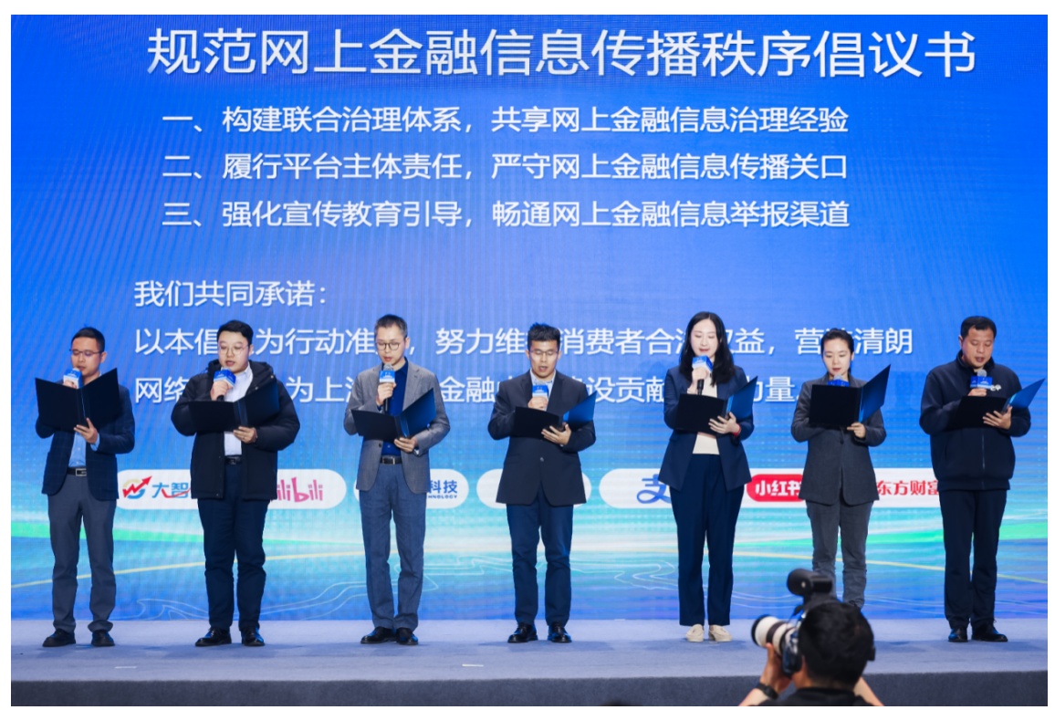为进一步凝聚行业自律共识,活动现场发布了《上海网络平台关于规范网上金融信息传播秩序倡议书》。奇富科技、支付宝、小红书、哔哩哔哩等互联网企业共同发起倡议,从构建联合治理体系、履行平台主体责任、强化宣传教育引导3方面提出7项具体举措,倡导全行业强化责任担当,严守金融信息传播关口,共同维护清朗有序的网络空间。