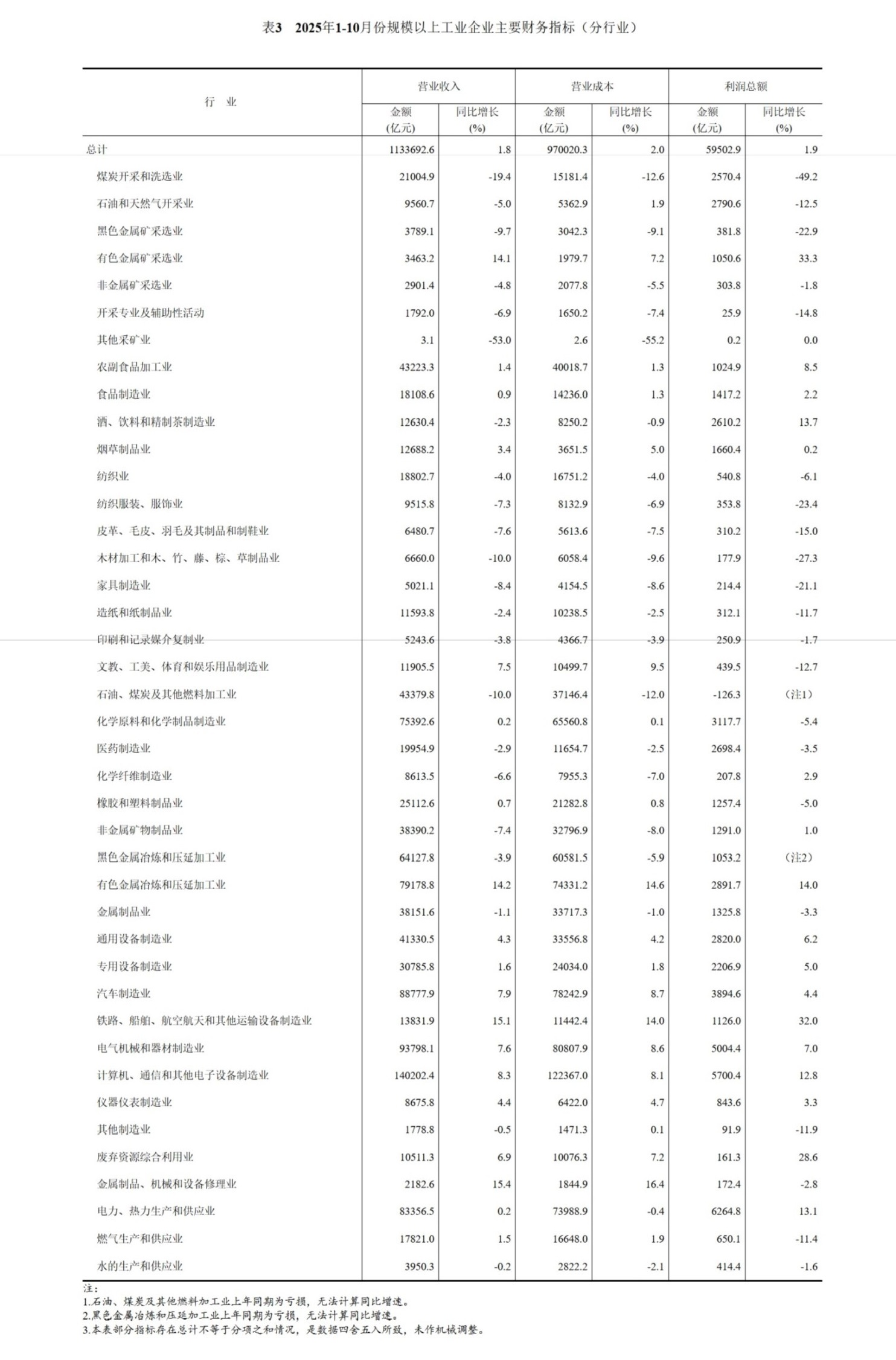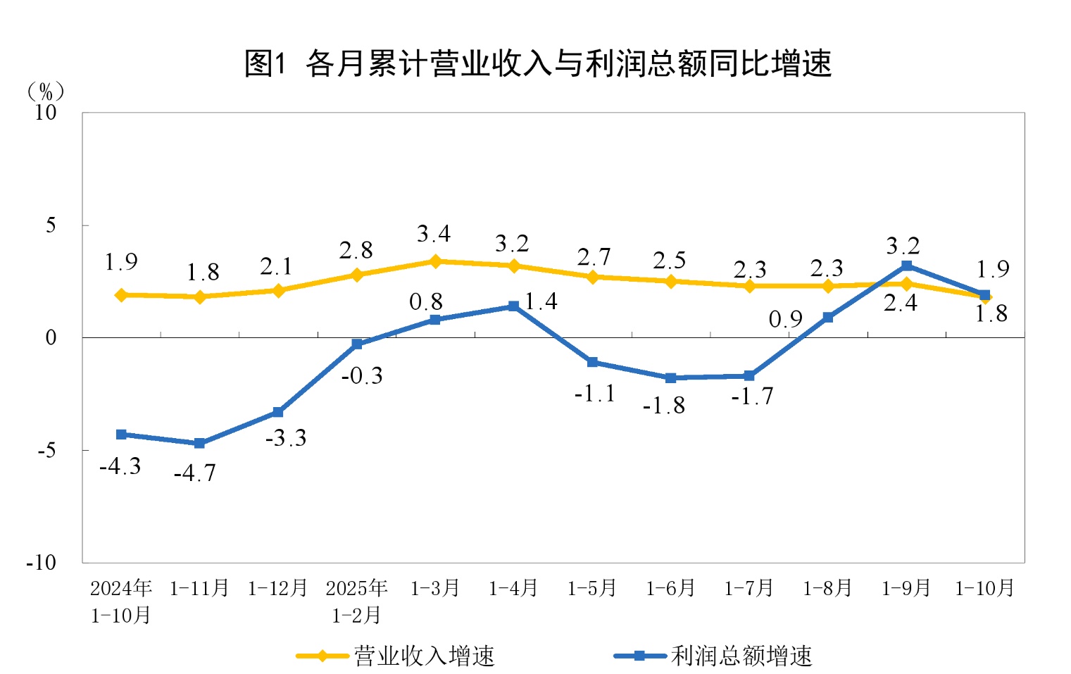 2025年1—10月份全国规模以上工业企业利润增长1.9%