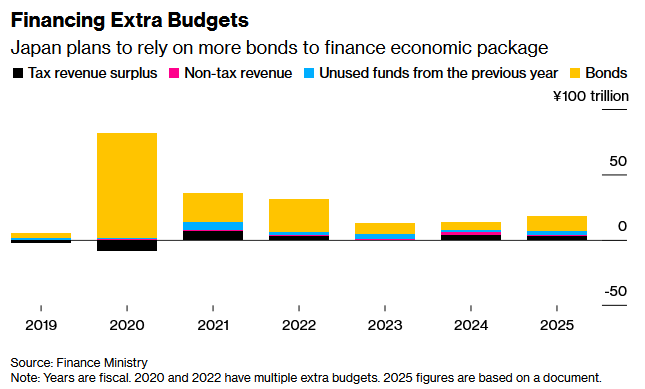 智通财经APP获悉,日本政府计划通过发行更多新债为其一揽子经济计划融资,新债规模将超过上一财年水平。报道称,日本2025财年补充预算预计约为18.3万亿日元。据媒体周四看到的一份文件,总额约18.3万亿日元的补充预算将通过增发11.7万亿日元国债来筹措。日本政府还预计动用2.9万亿日元税收盈余、约1万亿日元非税收入以及上一财年约2.7万亿日元未使用资金,以控制借贷规模。尽管如此,新增债务规模仍远高于去年为前首相石破茂的经济计划融资所需的6.7万亿日元,增幅达75%。
