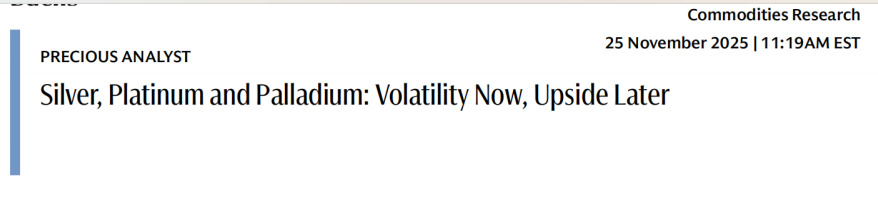 抛开短期波动,若在美联储宽松周期及多元化配置主题下,私人投资者继续将白银、铂金和钯金视为贝塔系数更高但波动性更强的黄金替代资产,那么这些金属的方向性压力可能呈上行趋势。ETF资金流和投机头寸可能仍是关键驱动因素。