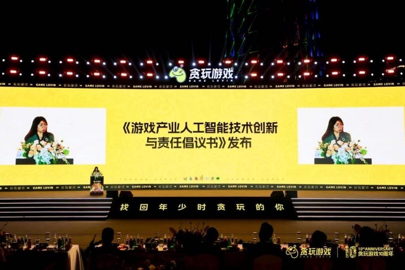 庆典上,中国音像与数字出版协会常务副理事长兼秘书长在致辞中表示:“贪玩十年的发展历程,是中国游戏产业锐意进取、创新图强的一个生动缩影。”他充分认可了贪玩在推动产业健康发展中所展现的稳健与担当,并对公司未来寄予厚望。中国互联网协会行业自律工作委员会秘书长于庆典上发布《游戏产业人工智能技术创新与责任倡议书》,旨在引导并规范AI技术在游戏领域的应用,为产业的高质量与可持续发展提供重要指引。
