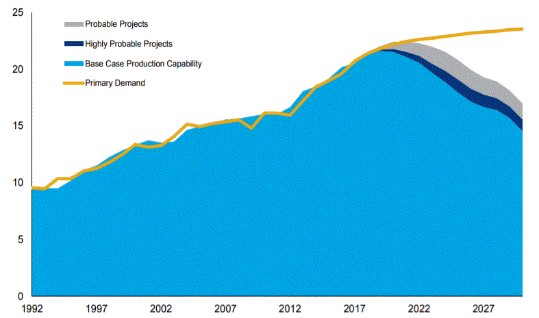 摩根大通基本金属和贵金属策略主管Gregory Shearer表示:“由于预计今年矿山供应增长基本持平,我们对 2026 年矿山供应增长的预测已降至仅约 +1.4%,比年初的预测低约50万吨。”