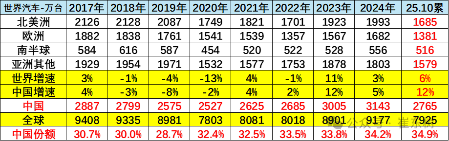 中国车市走势总体较好,份额持续提升,2020年以来中国的世界份额持续提升,到2023年达到33.8%,2024年中国车市达到34.2%,2025年1-10月份中国车市达到世界34.9%,已经是很好的。