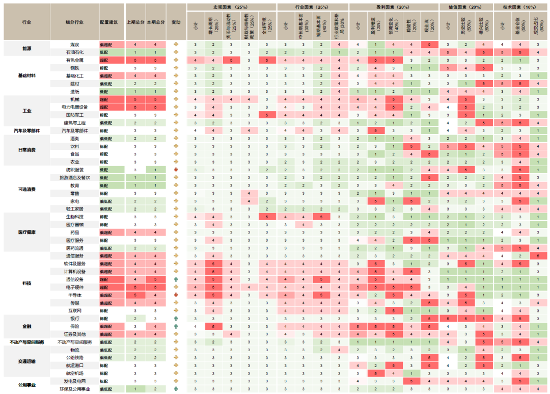图表1:中金A股行业配置观点及细分小项
