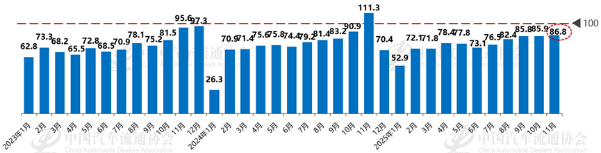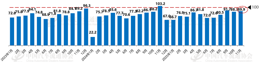 入店分指数:2025年11月入店分指数为89.9,较上月有所上升。厂商及经销商将在12月延续并加码年底冲量促销举措,持续促进消费者到店意愿提升;叠加春节前购车需求季节性攀升,将共同推动到店客流的增长。