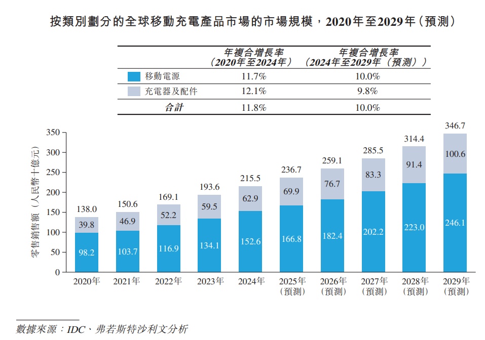 公司在移动充电、储能、智能家居安防及无线耳机等多个主要细分领域拥有全球领先的市场份额。具体而言,根据弗若斯特沙利文的数据,按零售销售额计,自2020年起,在移动充电产品领域,公司稳居全球第二,亦是全球及北美市场最大的独立移动充电品牌。2024年,公司以零售销售额计算的全球移动充电产品的市场份额为5.0%。