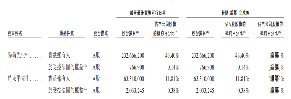 公司由阳先生及贺女士分别持有43.40%及3.64%的股权。阳先生和贺女士为一致行动人。因此,阳先生及贺女士为公司的控股股东。