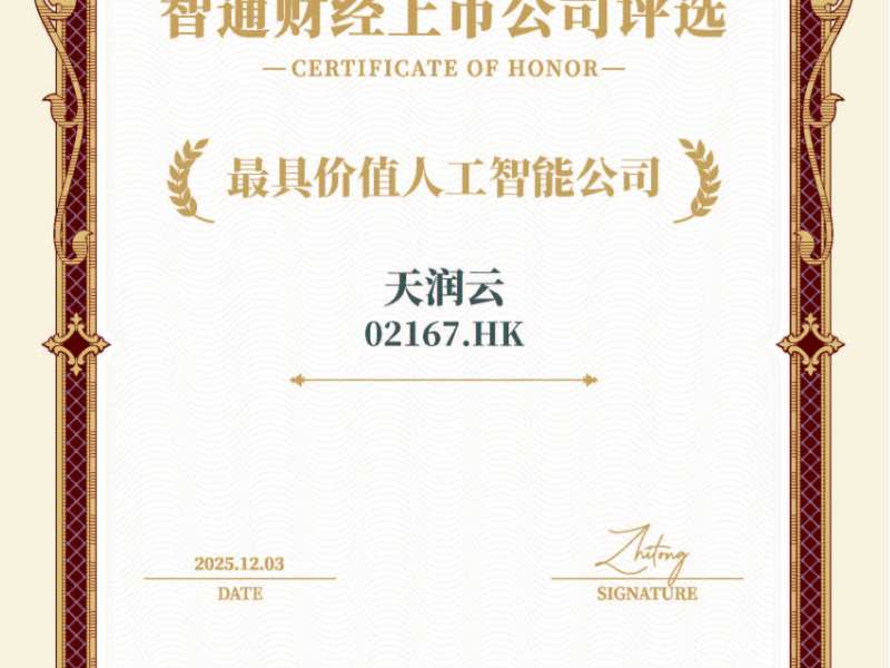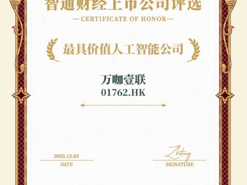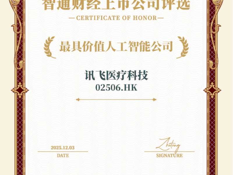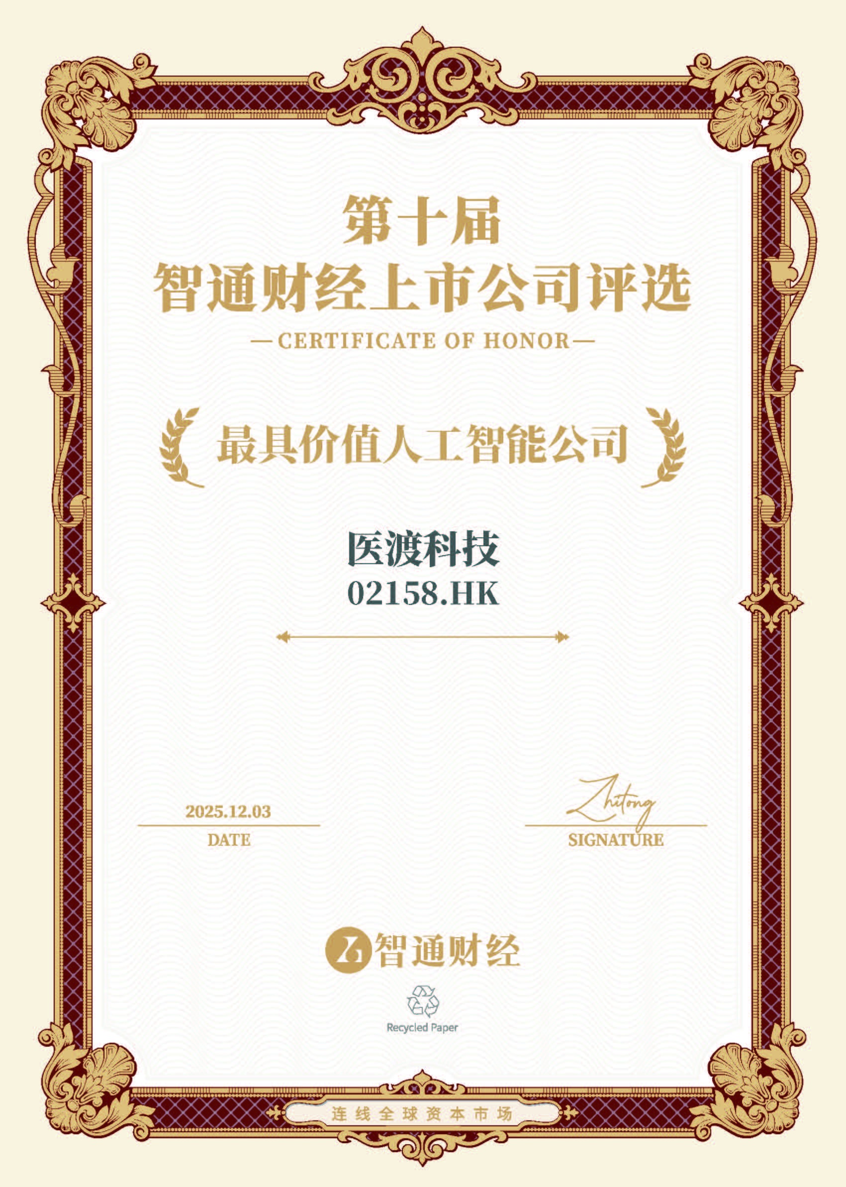 2025年12月3日,在由智通财经与新智基金网联合主办、冬日暖阳Donova独家承办的“第十届智通财经上市公司颁奖盛典”上,医渡科技(02158)凭借其在人工智能领域展现出的全面领先实力与高成长性,荣获“最具价值人工智能公司”奖。