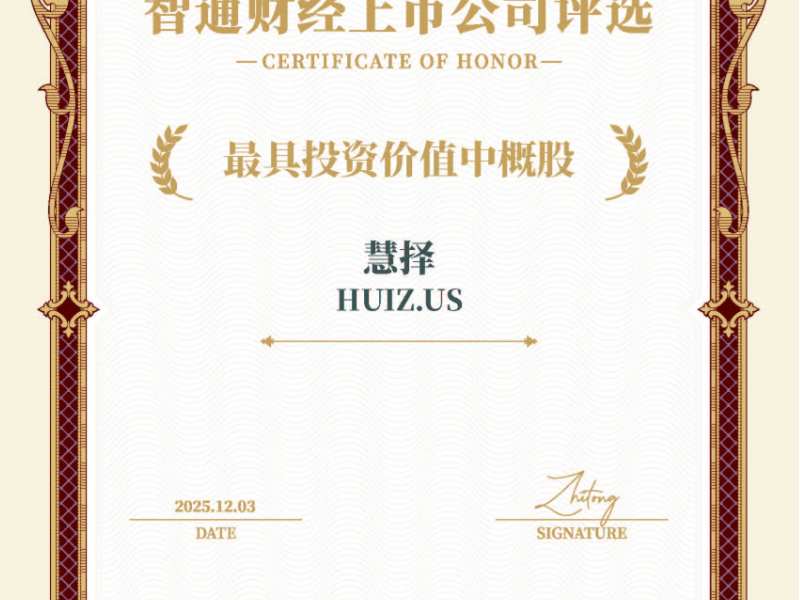 慧择(HUIZ.US)荣获“最具投资价值中概股”大奖,彰显卓越商业价值与社会影响力