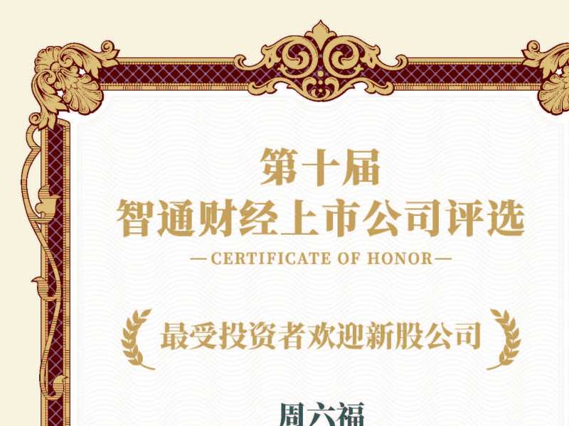 周六福(06168)荣获“最受投资者欢迎新股公司”奖,彰显上市热度与市场信心