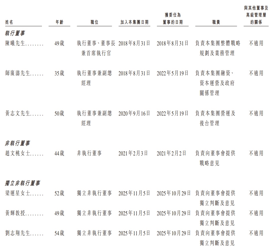 公司董事会将由7名董事组成,包括3名执行董事、1名非执行董事及3名独立非执行董事。董事会负责公司的管理及营运,并对此具有一般授权。董事任期为三年,并于彼等任期届满时合资格膺选连任。